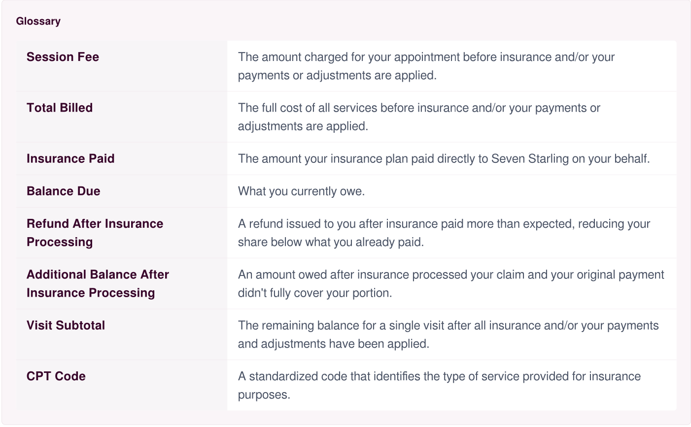 Insurance terminology can often feel like a second language. To help you understand your Quote of Benefits email and/or your Patient Balance Statement, we've included a breakdown below of the most common terms you’ll see.